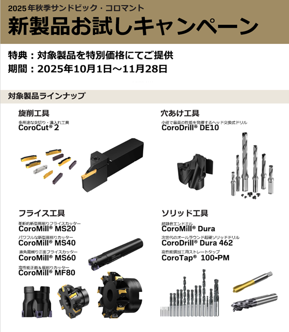 - 【朗報】2025年春期サンドビック・コロマント「新製品お試しキャンペーン実施中!」