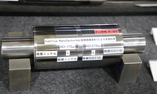 同社によると、AMについて「10年ほど前から金属積層技術が出てきたものの社会実装が進んでこなかったが、最近は経産省の支援や国家戦略として指定された宇宙産業、核融合の分野においても新たに適応が見込まれる技術」と認識しており、今回、複合加工機や5軸化後期に金属積層造形技術を統合することで新しい部品の製造もできるが既存部品の補修やメッキ表面処理などにもかつようできる柔軟な付加加工が行えるという大きなポイントを来場者に訴求していた。なお、同社のAM機ではレーザ式とワイヤアーク式の2種類がある。