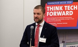 同氏はまず、「ハノーバーメッセ2026は非常に特別な展示会になる」と強調。「最先端のテクノロジーが一堂に会し、出展者も来場者も質の高いプレーヤーが集う場になる」と期待を示した。そのうえで、「私たちは展示会そのもののイノベーションにも取り組んできた」と語り、イベントの進化にも言及した。