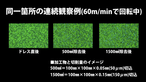新藤社長は、「生成AIを活用した画像処理技術として、手応えは十分に感じている」と語る。加工中の砥面が“見える”ことの意義については、「これまで砥粒の脱落や目詰まりが、いつ、どのように起きたのかは経験則でしか分からなかった。しかし可視化できれば、砥粒変化のタイミングが明確になる」と説明する。