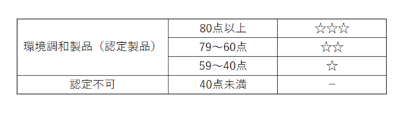 TAS14021による認定方式は、「製品基準」及び「企業基準」の二層評価に基づくフレームワークを採用し、総得点に応じた認定ランク(環境ラベル)が付与される。評価項目および配点を表2に示し、評価結果に基づくランク区分を表3に示す。また、ランクに応じた環境ラベルを図1に示す。