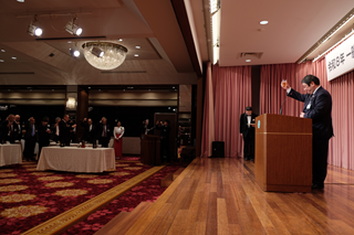 乾杯の発声は北川祐治副会長(北川鉄工所 会長)が行った。宴もたけなわの頃、散会した。