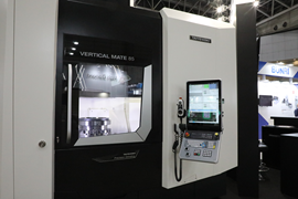 太陽工機は、『Vertical Mate 85 2nd Generation』を展示。同社はDMG森精機の子会社だが、このマシンの特長にはDMG森精機製のスピンドルspeedMASTER砥石軸を搭載し、最大出力18.5kW、トルク35.3N·m、最高回転数10,000min-1を実現している。操作盤は、大画面のタッチパネルと押しやすいハードボタンが組み合わされ、人間工学に基づいた専用設計に基づき直観的な操作性に優れた〝ERGOLine X sith CELOS X〟を採用することで、視認性が向上し、かいてき勝つ安全な操作を実現している。また、DXへの対応、セキュリティを強化していることで安心性を高めていた。