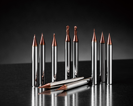 「MOLDINOが切り拓く未来のものづくり」をテーマに、次世代超硬合金を母材に採用した新商品「IXシリーズ」と、微細・精密加工ソリューションをはじめとする最新加工を紹介する。IXエポックディープボール-TH3「IX-EPDB-TH3」は、次世代添加元素を加えた新開発の超々微粒超硬合金を母材に採用したボールエンドミル。耐摩耗性と耐欠損性を高次元で両立する。焼き入れ鋼や高速度鋼(ハイス)など50HRCを超える高硬度鋼の小型精密金型の粗加工から仕上げ加工に適する。特に60HRCクラスの高硬度鋼加工では従来の何倍もの工具寿命を実現できるため、高価な立方晶窒化ホウ素(CBN)工具からの置き換えも期待できる。また、焼きばめホルダーに最適なショートシャンクを採用。外径実測値をラベルに表記することで測定の手間なく実測値をCAMに反映でき、加工精度の向上と段取り工数削減を狙える。