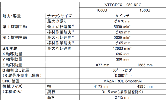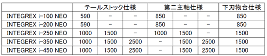 INTEGREX I NEOシリーズとして以下の仕様を展開。豊富なラインナップより、あらゆるワークサイズの高効率・高精度加工に貢献する。