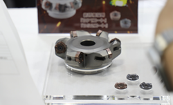 三菱マテリアルは穴加工の市場にて①ランニングコスト低減、②高精度、③高能率の3つのベネフィットを顧客に提供するとして、人気の超硬ソリッドドリル「DVAS」に続く新世代ドリル〝TRISTARドリルシリーズ〟として誕生させたヘッド交換式超硬ドリルを展示。2本ねじ締結はホルダ変形を抑制し高強度な締結ができるので高負荷な加工環境でも緩みにくいのが特長。ホカホカの新製品だ!