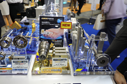 近年、エンジンピン、センサーピン、コネクタピン、軸受け部品などの精密部品の高精度加工が求められているが、不二越が展示していた新製品のCNC自動旋盤用工具「LAシリーズ(LAアクアREVOドリル/LAアクアREVOドリルスターティング)」に注目したい。この製品は、大径から小径まで工具の突き出し長さを揃えて取り付けることができるので、工具交換時の干渉を回避できるもので、最短移動で能率が向上する時代に合致した工具だ。