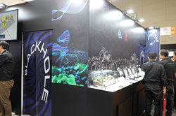 今回の展示会で趣向を凝らした展示を見せつけたイワタツール。デジタルを駆使して展示内容をより分かりやすくした小部屋の「ブラックホール」はまるで小さな映画館。遊び感覚を盛り込みつつ優位性を訴求。昨年のJIMTOFでも高速加工実演が好評を得ていたがMECTではさらに切削条件をアップさせて高速加工を実演していた。