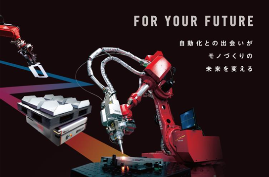 今回のテーマは、 「FOR YOUR FUTURE ~自動化との出会いが、モノづくりの未来を変える~」。労働者不足や熟練技能者の技術継承といった昨今のモノづくりが抱える課題に応える自動化ソリューションを紹介するとのこと。加工から搬送まで一気通貫で自動化し、さらにAI、DX、IoTを組み合わ せることで多品種少量生産における段取りなどの課題解決や、工場全体の稼働状況の可視化と最適化を実現する様子が見られます。