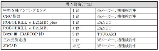 切削加工部門はフジムラ製作所第一工場を大幅改装して、年内に手配済みの中古設備の搬入・稼働を完了し、来年早々に新規設備の導入を進めていく。新規導入予定の設備は「中型5軸マシニングセンタ」と「CNC旋盤」の2機種を予定しており、合計6台のマシンで事業をスタートする。