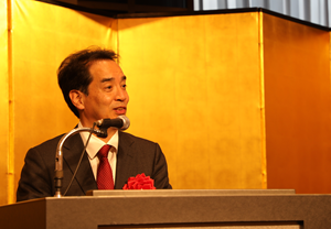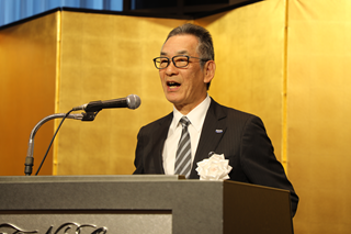 坂元会長は日頃の感謝の意を述べた後、昨年を振り返り、世界各地には依然として地政学リスクが顕在化している。米国は矢継ぎ早に通商政策を打ち出し、各国がその対応に追われるなど、世界情勢は混沌としたなかで、透明、不確実な状況が続いた1年だった」と振り返った。