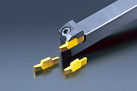 ③高い次元で耐チッピング性と耐摩耗性を両立したCVD被膜と、4種母材の組み合わせにより、安定した高能率加工(高送り、高切込み、高速切削)が実現できたことで、ユーザーより高い評価を得ている。特に安定した寿命を特徴とすることで、無人運転時間の延長が可能となった。これは日本製品が安価な海外製品との競争する上で大きな強みとなった。
