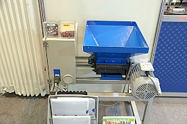 ブース内には、ロングスタマシンの「チップクラッシャー」も展示されていた。これは切粉の容積を1/3~1/10にする製品で、切粉台車の好感回数を減らすことにより作業の効率化、生産性の向上に繋がるもの。切粉回収業者の手配回数が減ることによる経費削減、切粉置き場の省スペース化が実現される。金型や部品加工の生き残り戦略の秘策が詰まった工具を展開!
