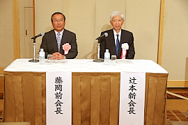 続いて辻本新会長が、「藤岡前会長は厳しい建設機械の市場環境の中で、国内建機メーカーのグローバル社会の価値創生への貢献、会員各社に対して変化の先取り等、有用な情報提供で功績を残された。特にアイコンストラクション、インダストリー4.0の新しい技術やTPP等の新しい政策の対応として、イノベーション委員会を立ち上げ、活動に尽力された。このリーダーシップに対して感謝を申し上げる。当工業会は建設機械産業の健全な発展を図り、日本経済の発展と国民生活の向上に寄与することを目的に1990年に設立したが、新興国の急速な経済成長に伴い、建設機械が活躍する土俵はグローバルに拡大した。当工業会では会員各社の世界的な事業展開とともに、世界各国の業界団体との積極的な交流を行うなど活動がグローバルに広がっている。その中で、近年では生産性や安全性に寄与する技術開発が推進され、いろんな取り組みが進められている。新たな時代の流れに対応するため、藤岡前会長の功績であるイノベーション委員会の活動を引き継ぎ、よりよい運営を目指していく」と豊富を語った。