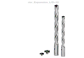 『DrillMeister』は、独自の自己拘束型クランプシステムの採用により、簡単で迅速なヘッド交換を可能にしている。工具交換はヘッドを付け替えるのみで、ツールホルダからのドリルボディの脱着や突出し量の調整が不要となることから、工具交換時間を大幅に短縮できる。また、ヘッドは小さな力で取付け・取り外しができ、必要に応じて機上での交換も可能。今回拡充を行うL/D = 12 は、工具径φ12.0〜22.9 mm に対応し、シャフトや熱交換器の穴加工等の深穴加工で、抜群の性能を発揮するヘッド交換式ドリル。ボディには強ねじれ溝を採用し、さらに溝面に特殊な磨き処理を施すことで、安定した切りくず排出性を実現している。これによって、特に切りくず排出が難しくなる深穴加工時に、抜群の切りくず排出性能を発揮する。