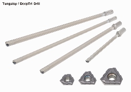 ソリッドドリルは、ガンドリル加工に対し高い送りで加工が行えるが、穴曲りや切りくず排出不良に伴う折損などのトラブルが発生する場合がある。これらの工具はともに、再研削による管理コストや予備工具数の増加など管理面での負担も大きい工具である。